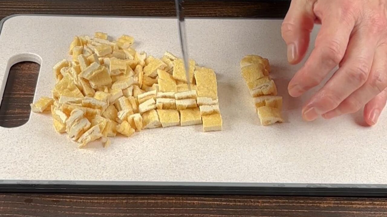 油揚げは1㎝角に切ります。