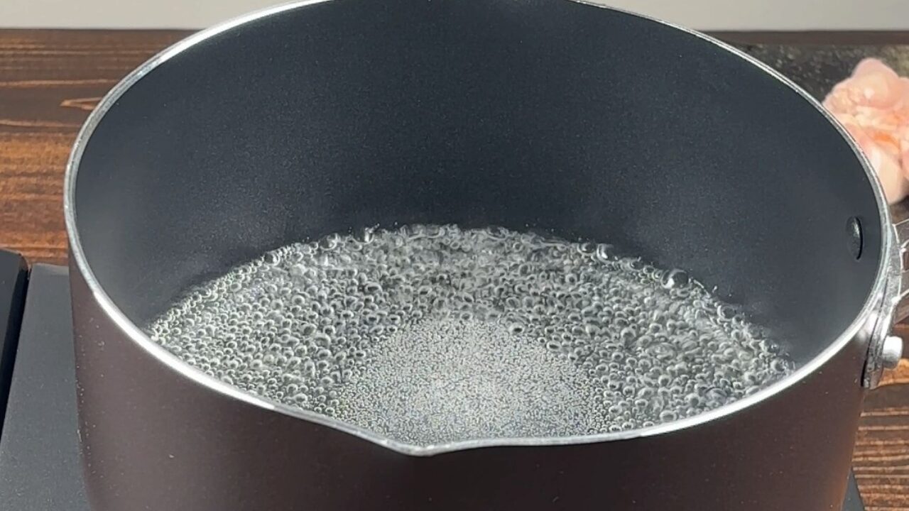 鍋に水、酒、みりん、砂糖を入れて強火にかけます。