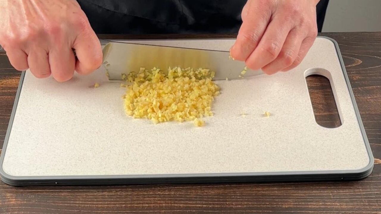 ショウガをみじん切りにします。