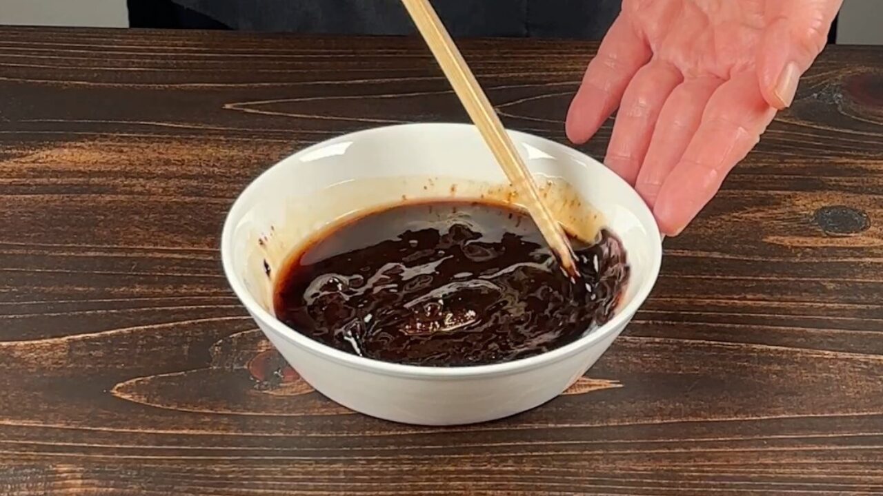 器に甜麺醤と豆板醤、みりんと醤油を入れて混ぜます。