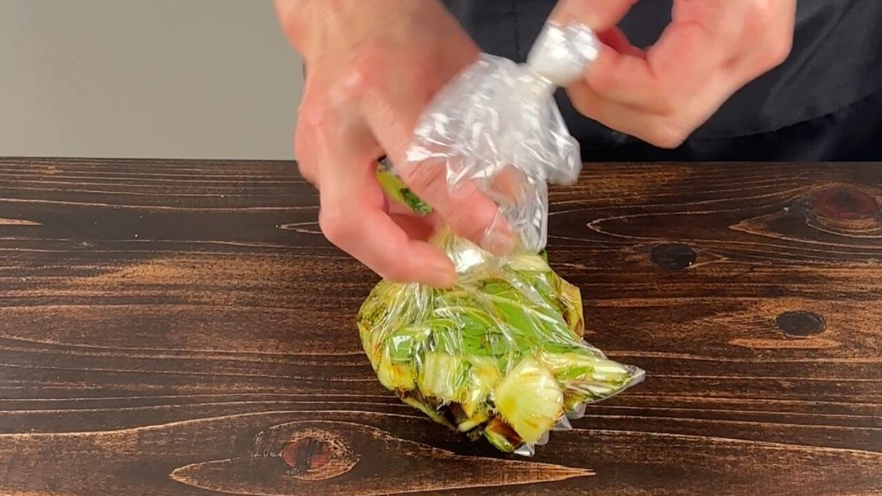 空気を抜きながら袋の口を閉じ、冷蔵庫で2時間漬けます。