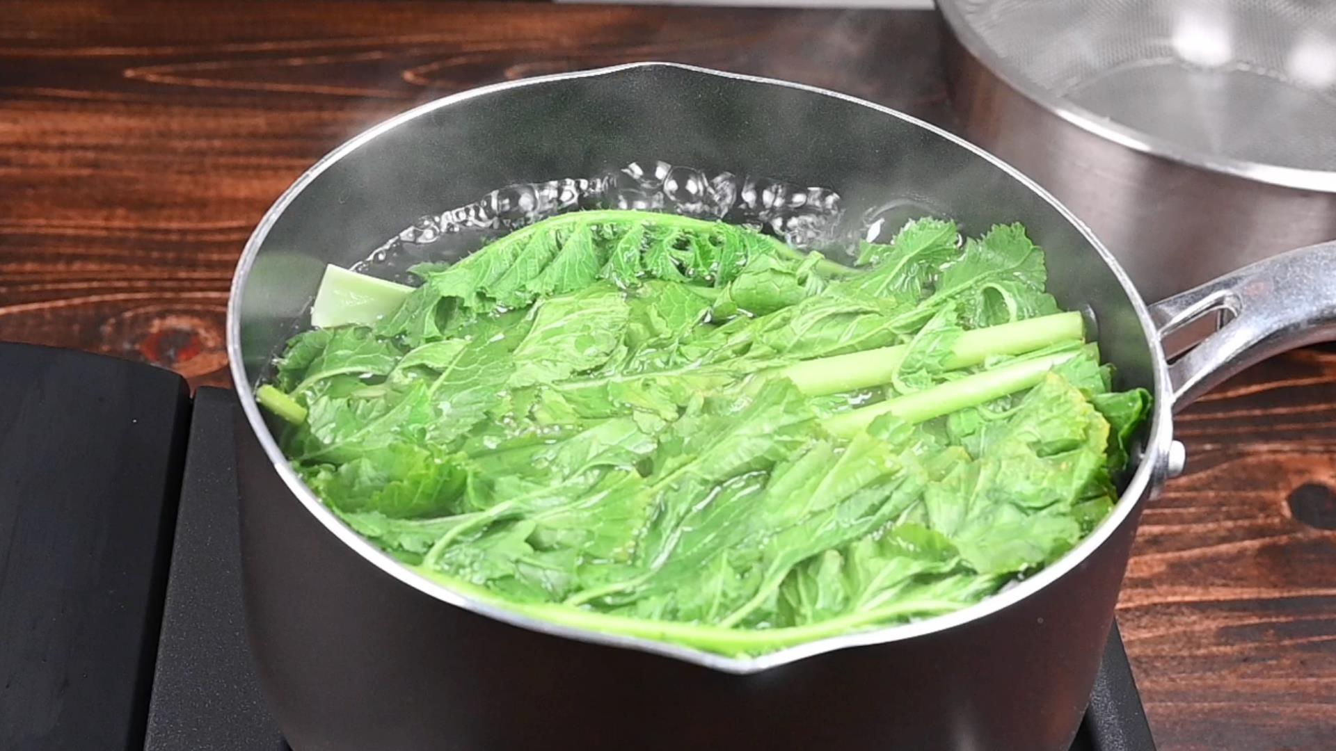 ゆでることで硬い茎や葉が柔らかくなり、またアクが抜けて苦みが抑えられます。
