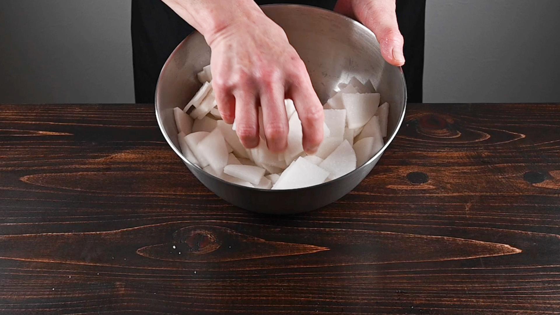 ボウルに大根と塩を入れて軽くもみ、10分ほど放置します。