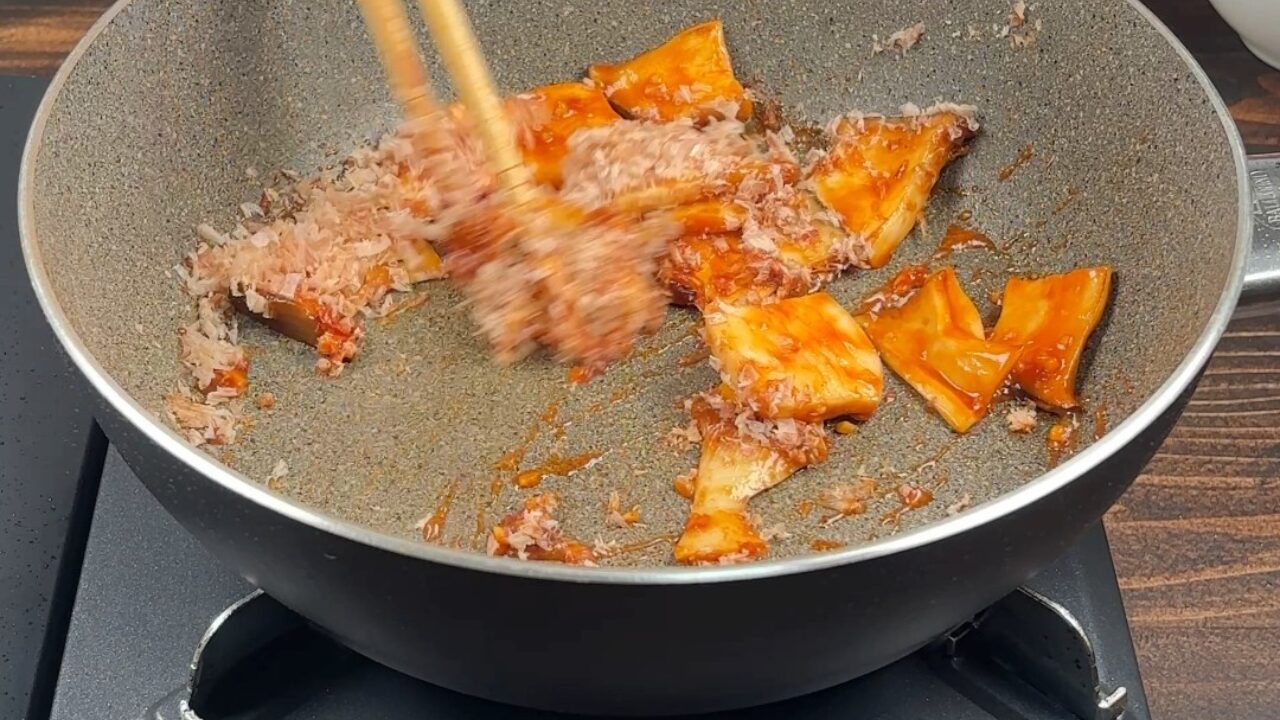エリンギと鰹節の旨味たっぷりの炒め物です。