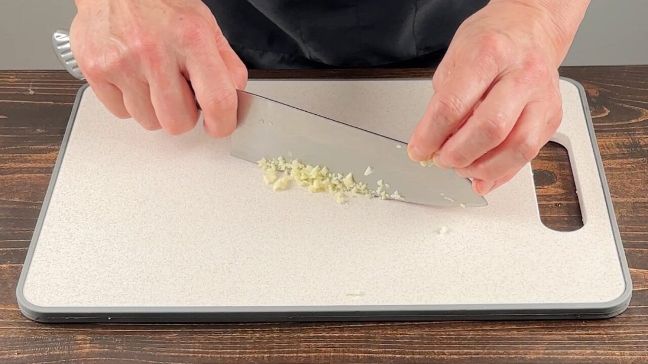 ニンニクをみじん切りにします。