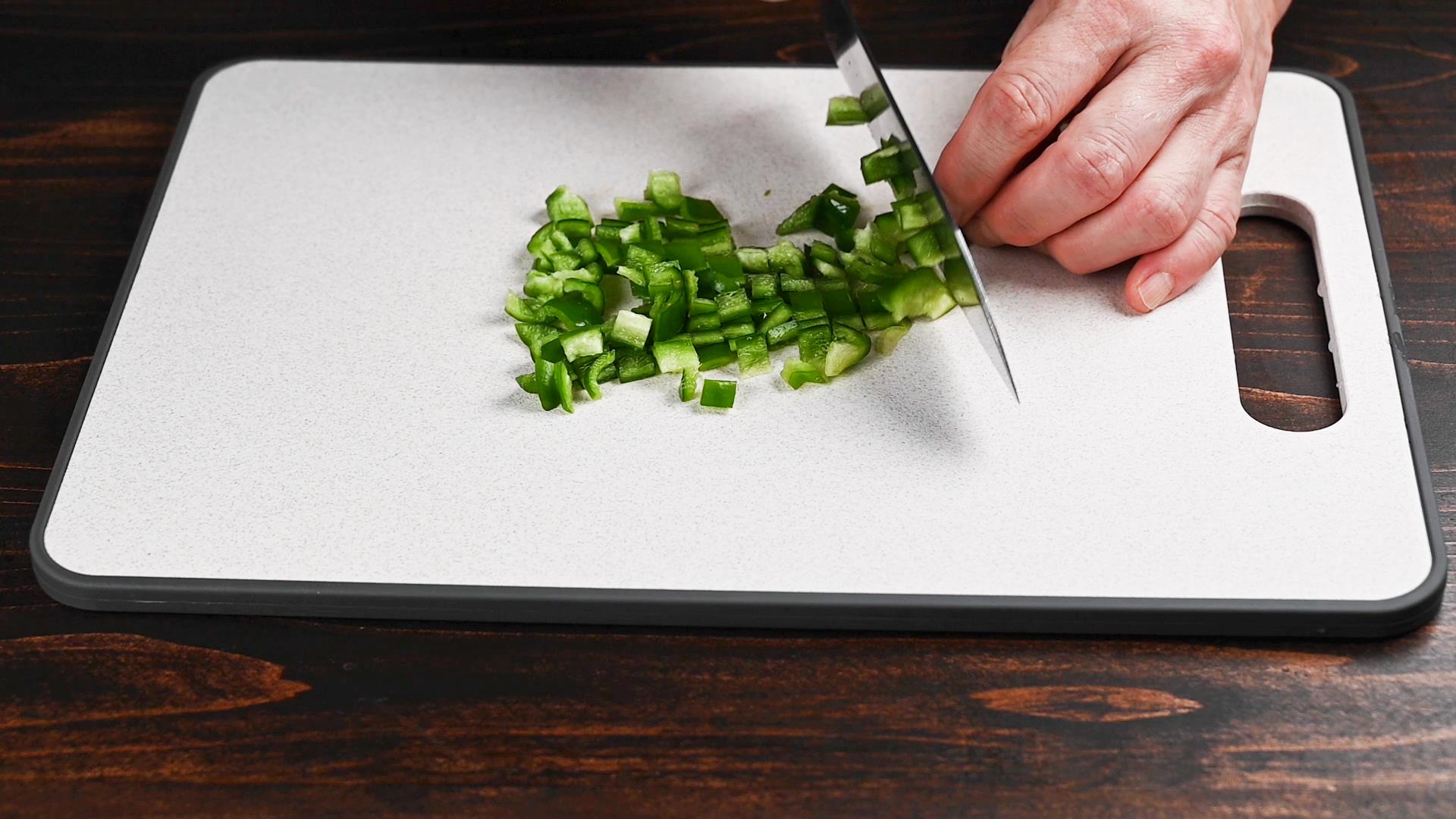 ピーマンは1㎝角に切ります。
