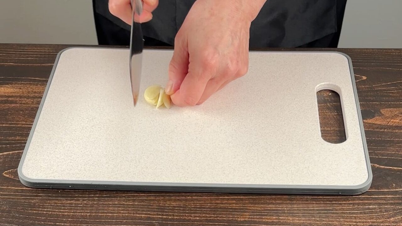 ニンニクを薄切りにします。