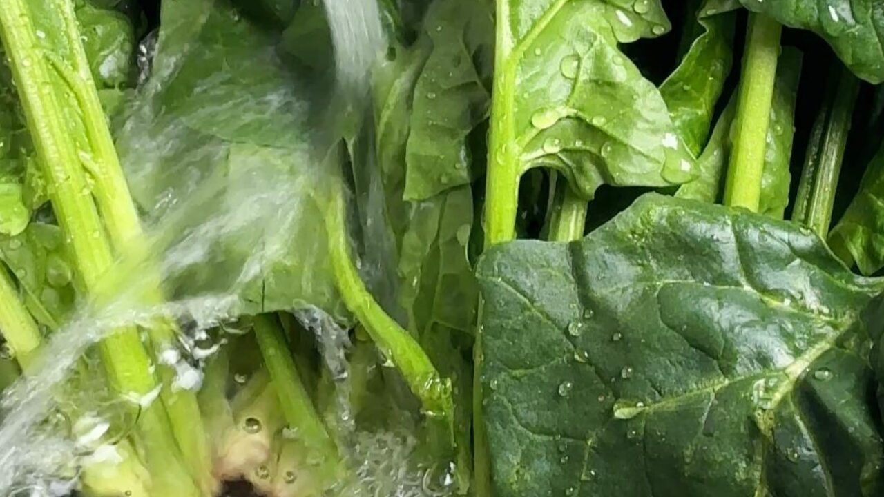 ほうれん草を2回に分けてゆでます。