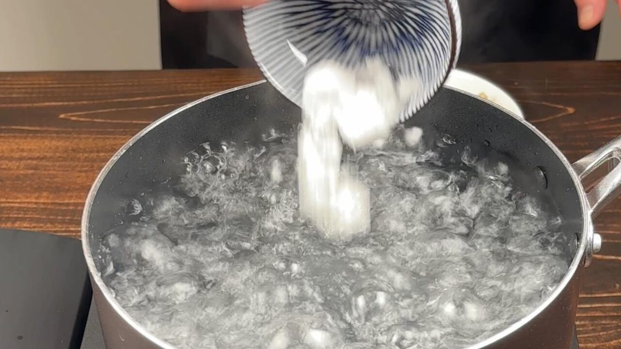 鍋にお湯をわかして塩を入れます。