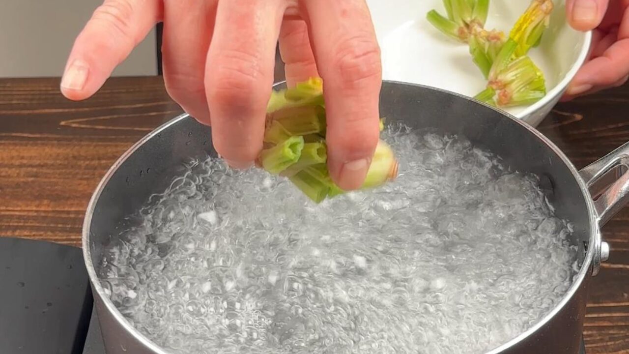 残りの根元と葉も同様にゆでます。