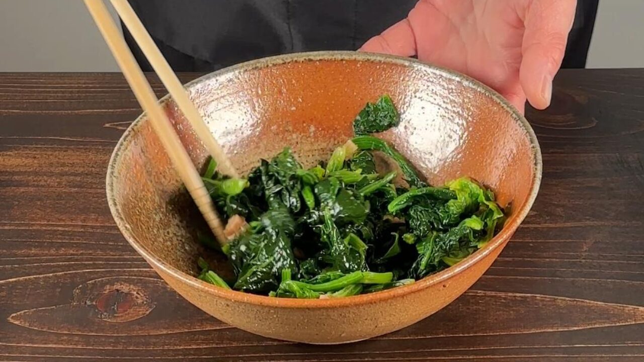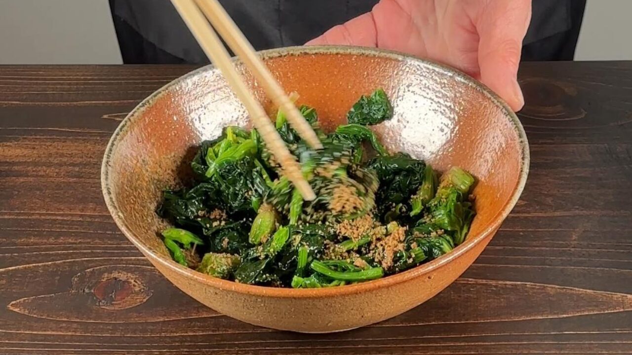 そして葉の半量も入れてさらに30秒ゆでます。