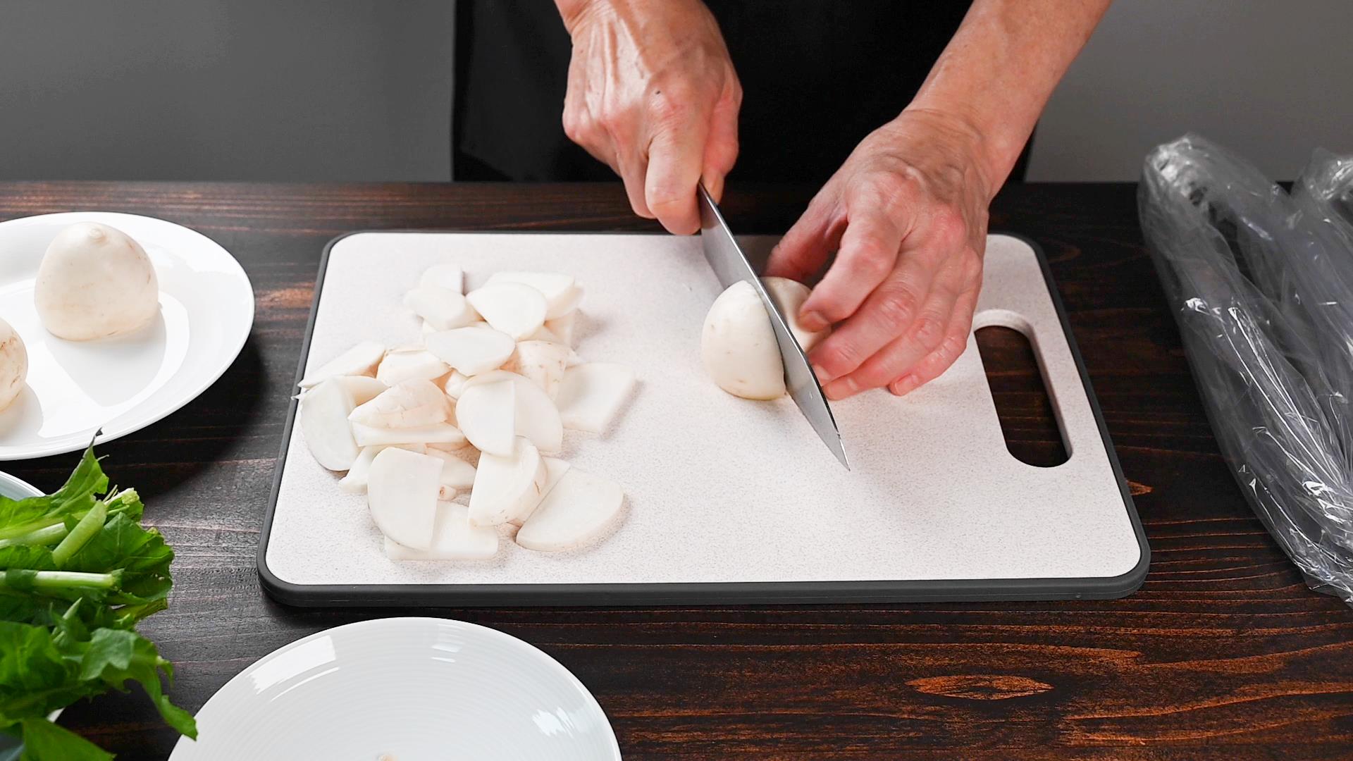 柔らかそうなカブであれば、皮はむかなくて大丈夫です。