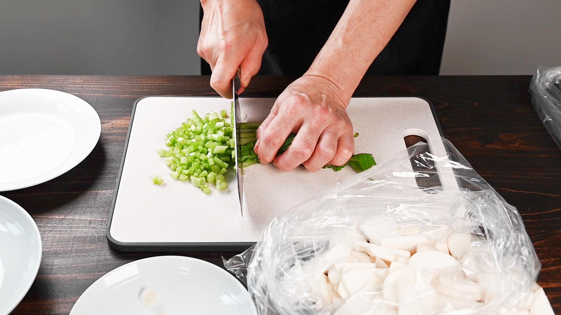 実は縦ふたつに切ってから薄く半月切りにします。
