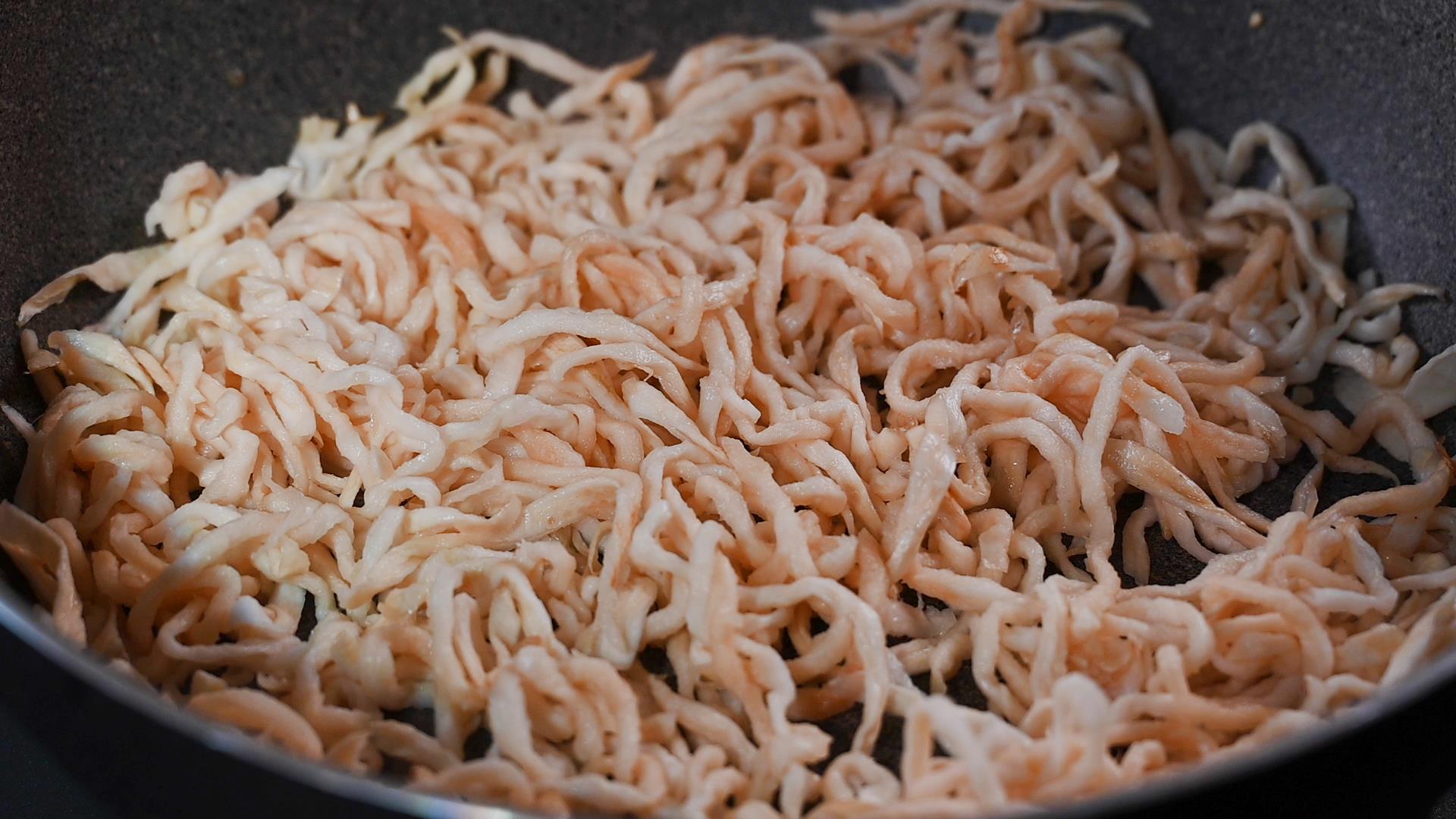 切り干し大根に油がなじむまで炒めたら、いったん火を止めます。
