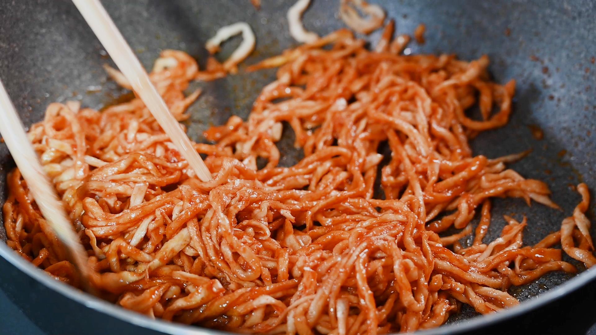 調味料を入れる前にコチュジャンの味見をして、砂糖の量を加減してください。