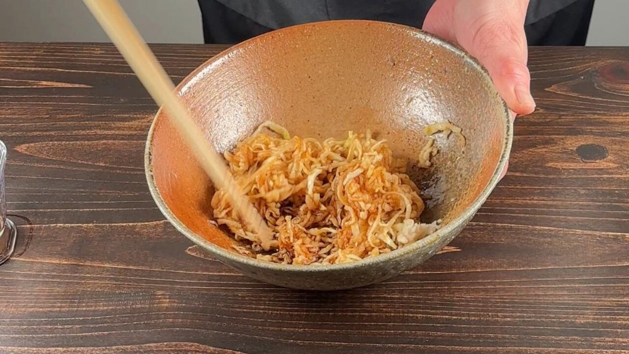 切り干し大根が柔らかくなったら水をしっかりしぼります。