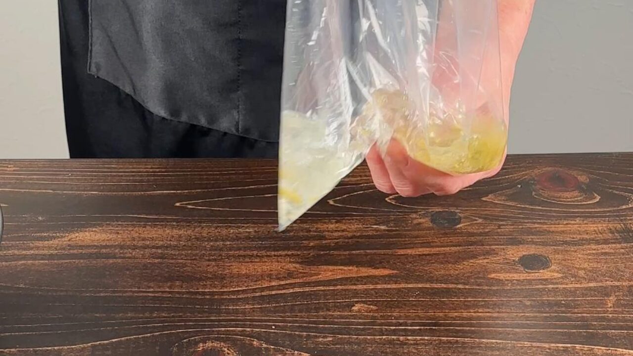 ポリ袋に塩と柚子コショウと水を入れて混ぜます。