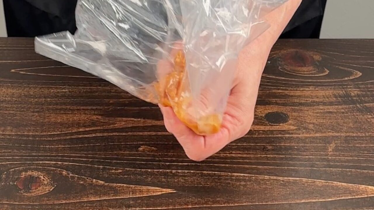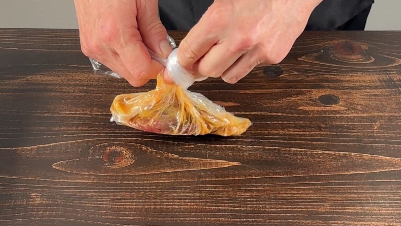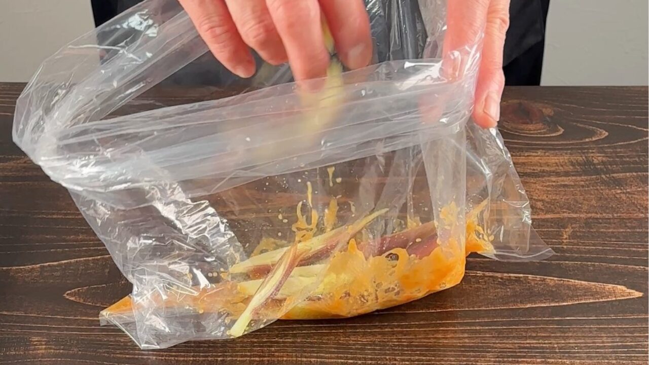 袋の空気を抜いて口を閉じ、冷蔵庫で2時間漬けます。