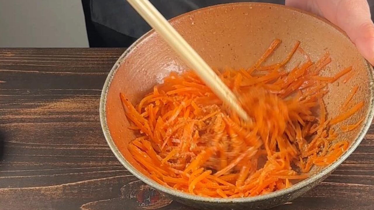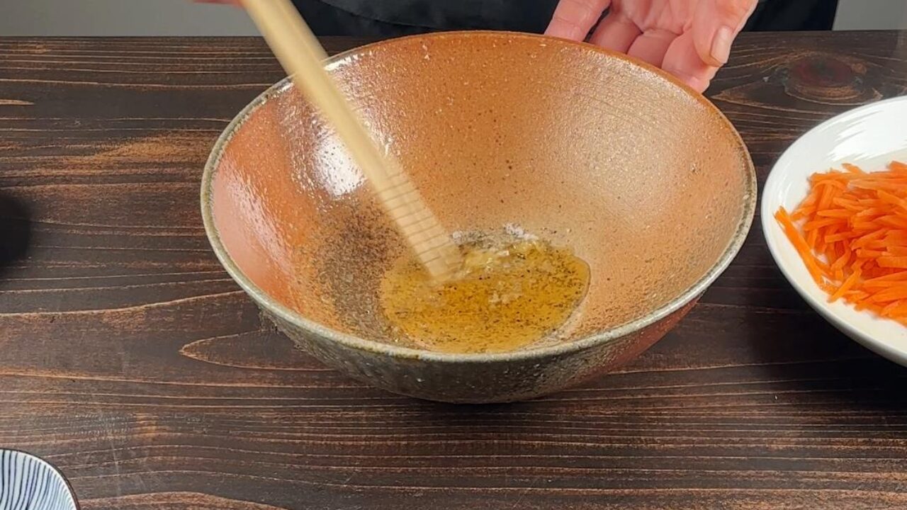 にんじんとすりゴマも入れて和えます。