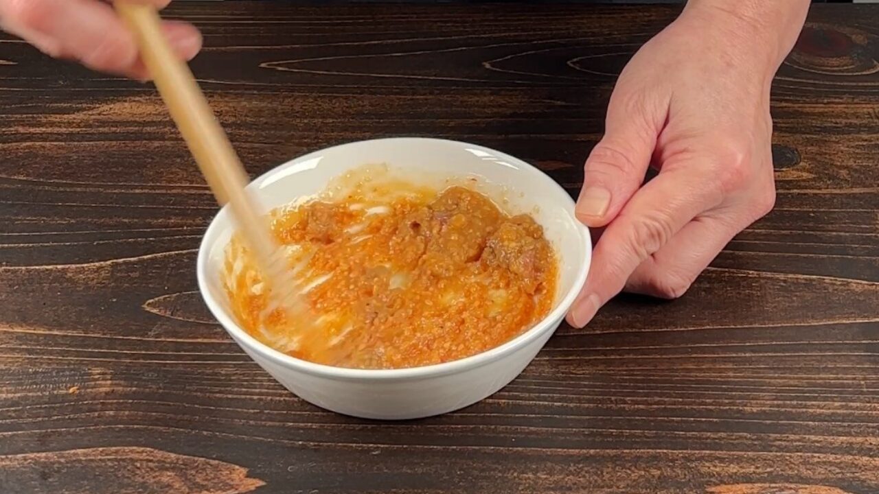 器に味噌とアンチョビ、煮切ったみりん、おろしニンニク、唐辛子を入れて混ぜます。