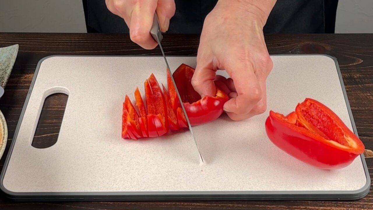 パプリカを食べやすい大きさに切ります。