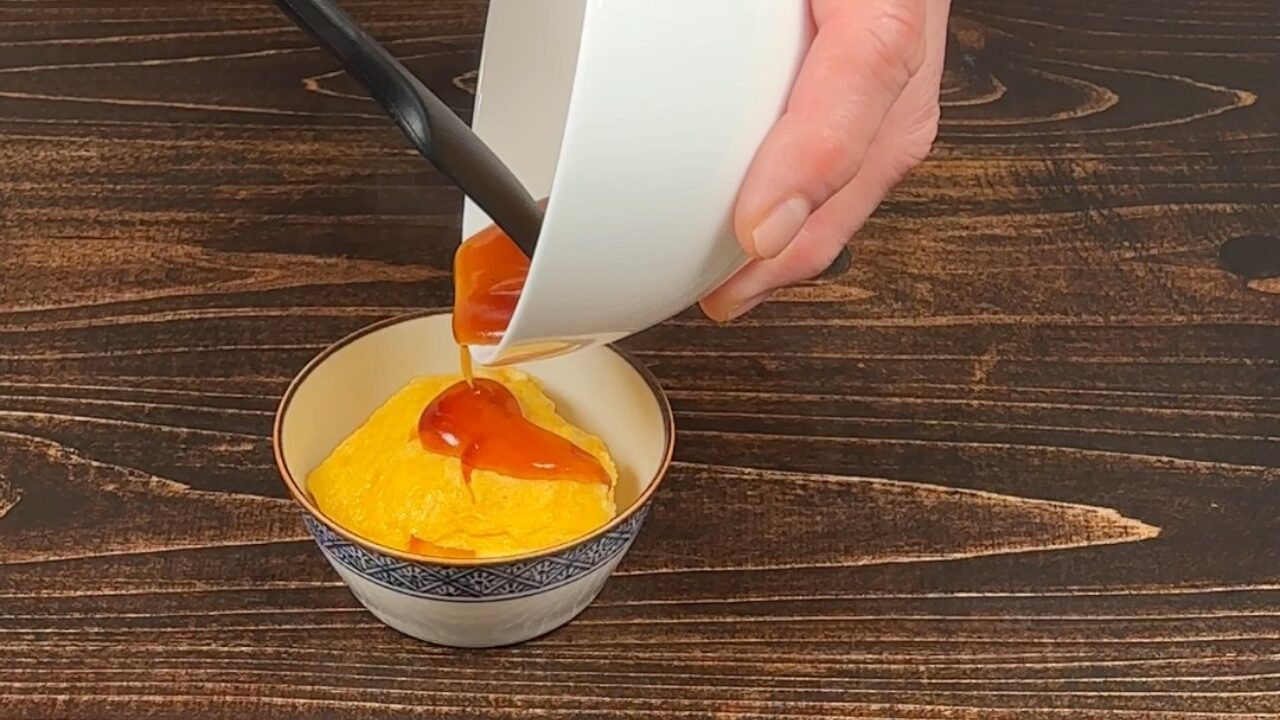 卵の上にピリ辛甘酢あんをかけます。