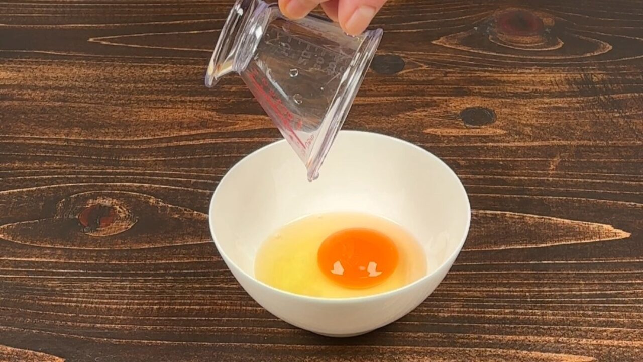 器に卵と水小さじ1を入れて混ぜます。