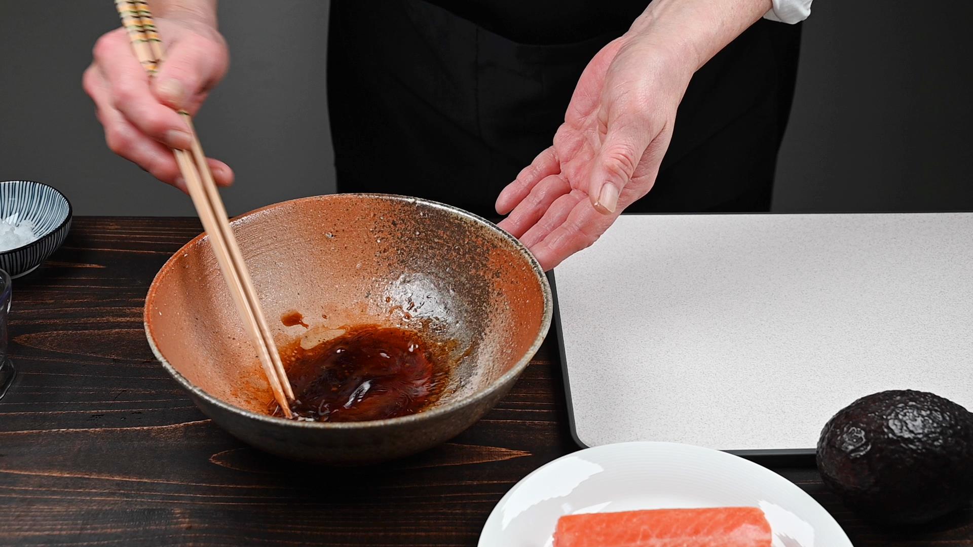 ボウルにみりんと醤油、塩、ゴマ油、おろしニンニク、お好みでタバスコを入れて混ぜます。