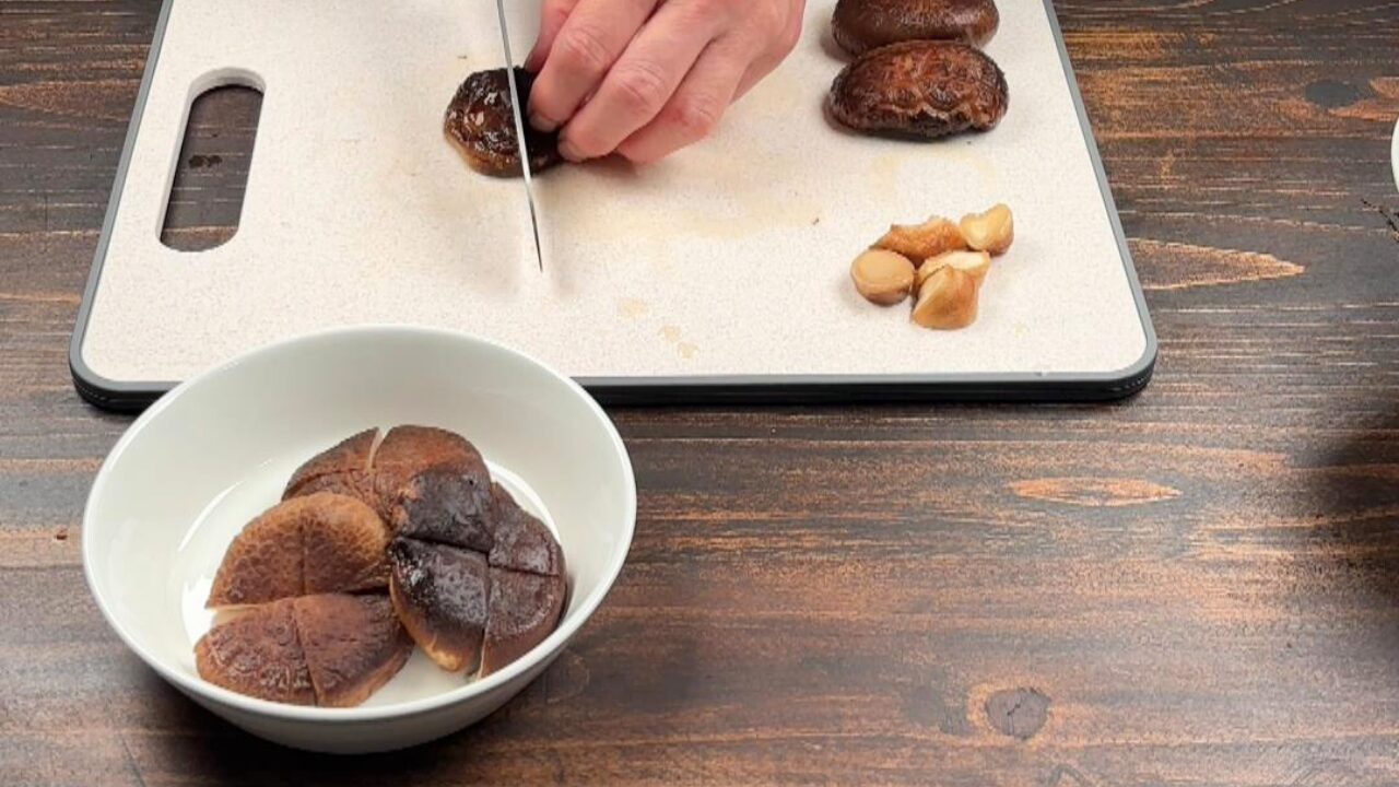 柔らかくなったら傘と軸に分けます。