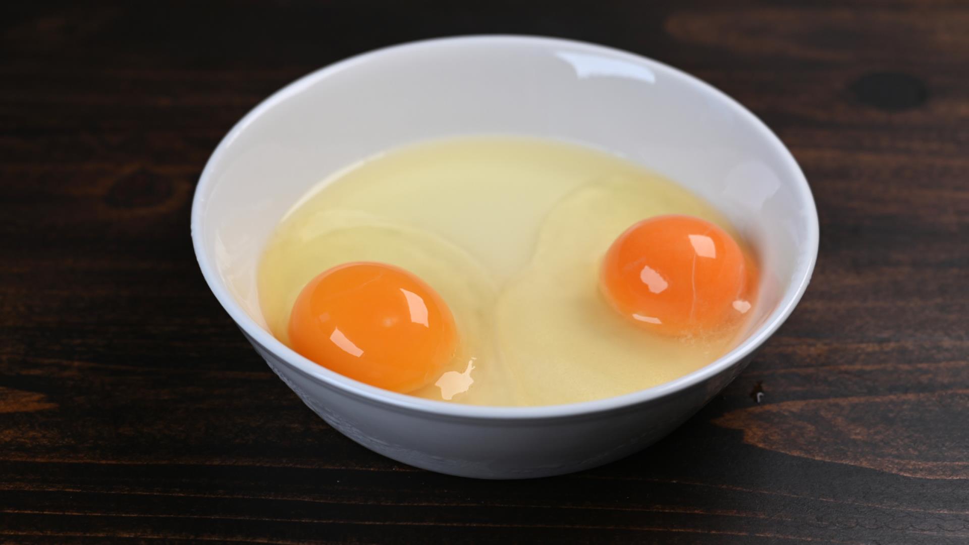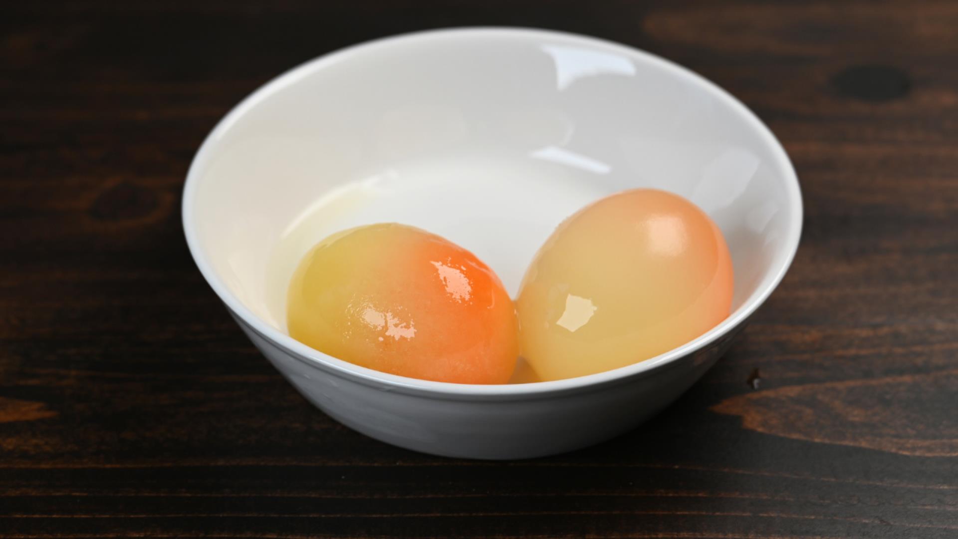 卵黄は弾力が出て丸くなり、卵白はナマの状態に戻ります。