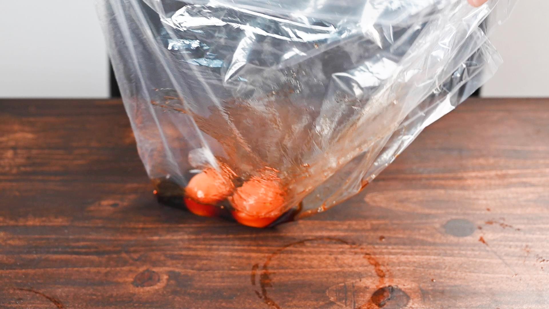 解凍した卵の黄身だけ取り出し、ポリ袋に入れます。