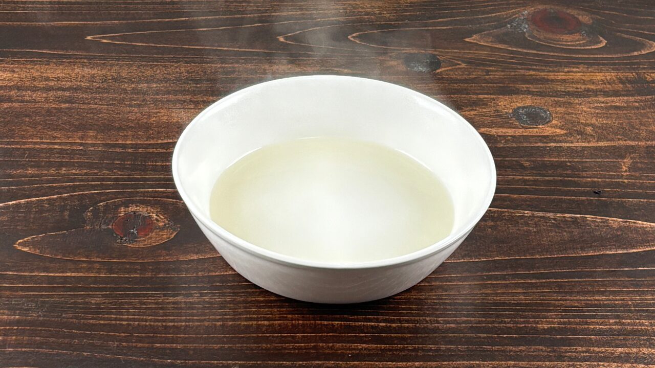 大きめの耐熱容器にみりんを入れ、電子レンジ600w で1分加熱し、冷まします。