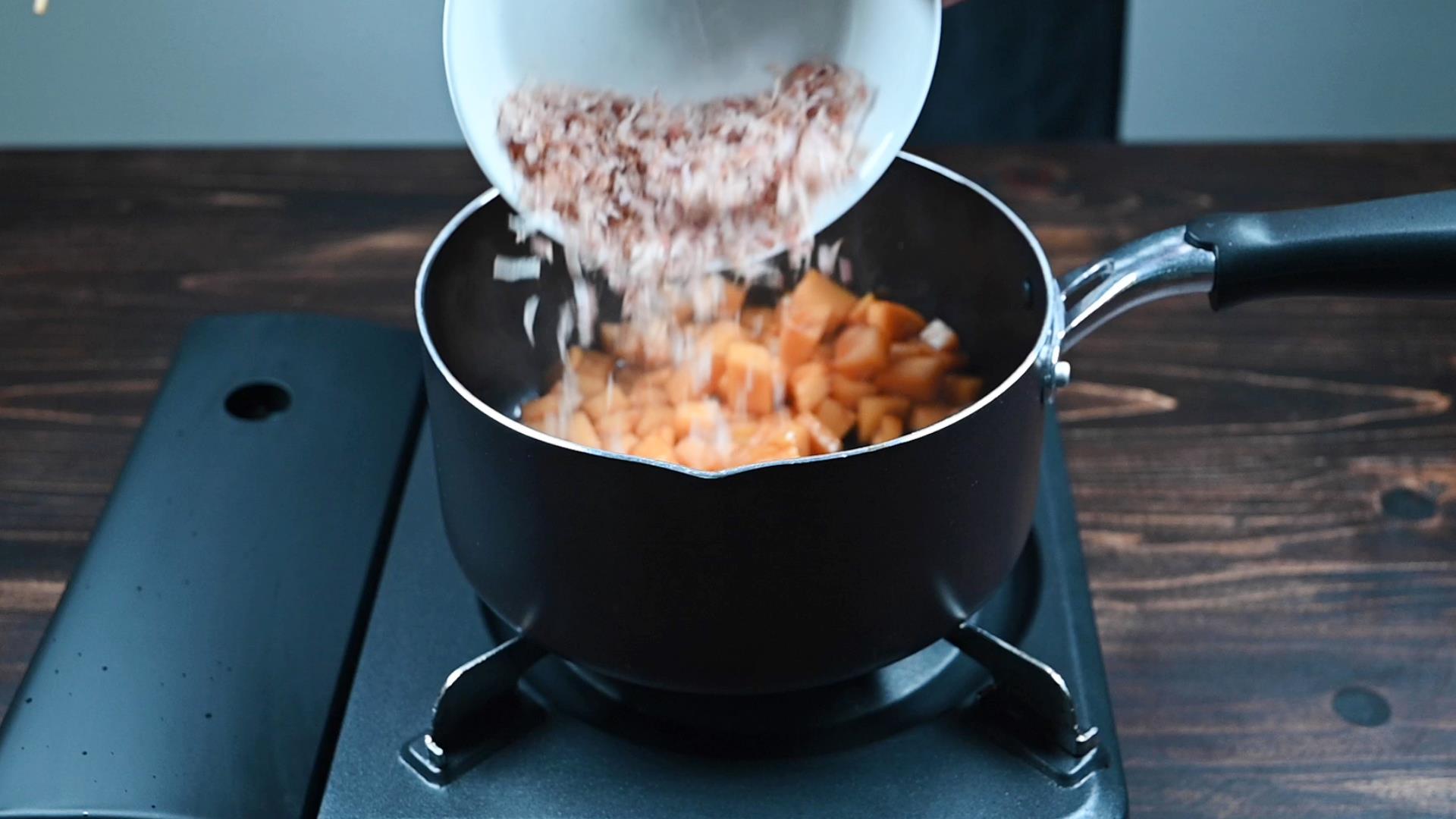汁がだいたい無くなったら火を消し、削り節をまぶします。
