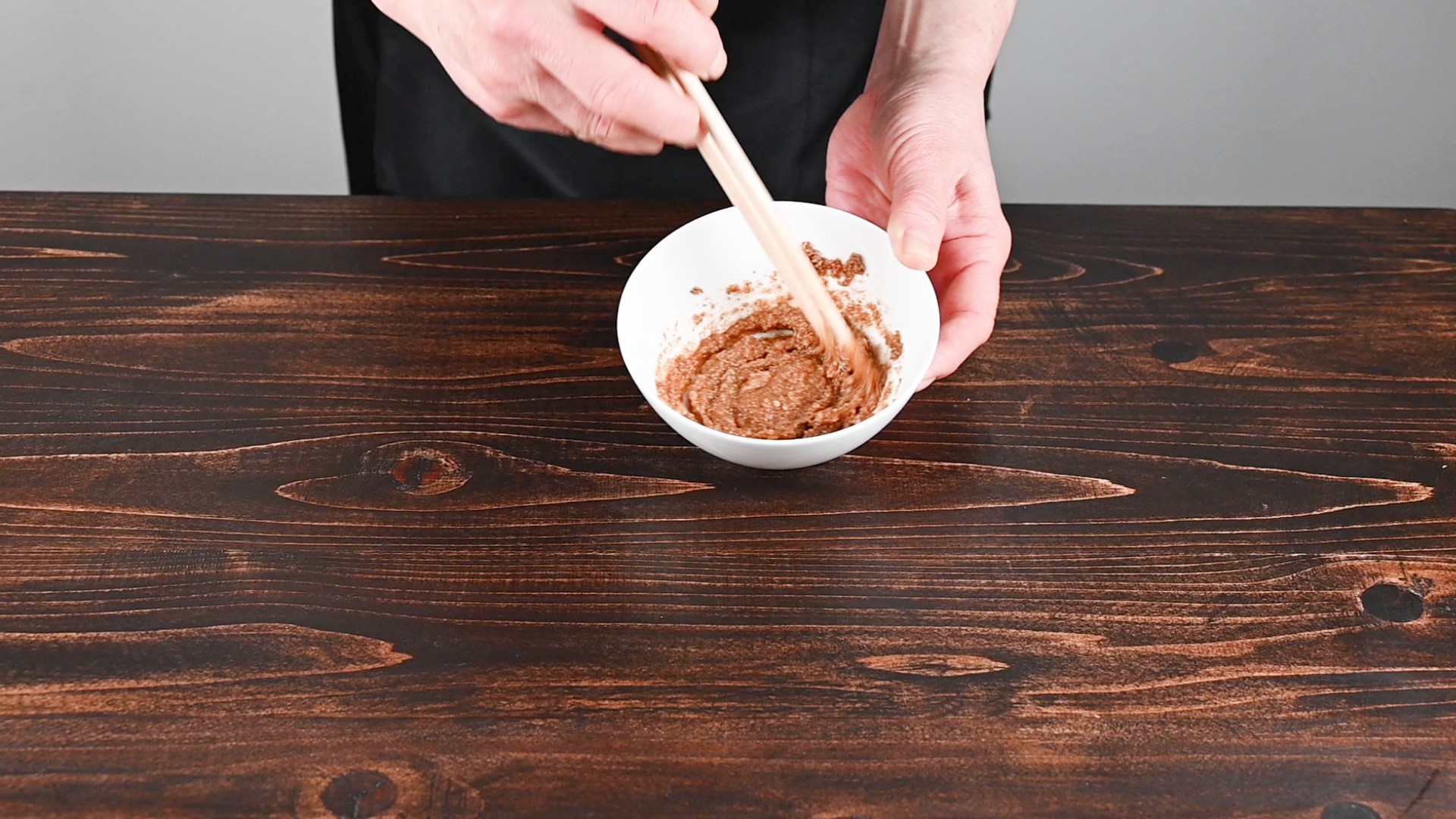 みりんの粗熱が取れたら砂糖と味噌、すりゴマを入れて混ぜます。