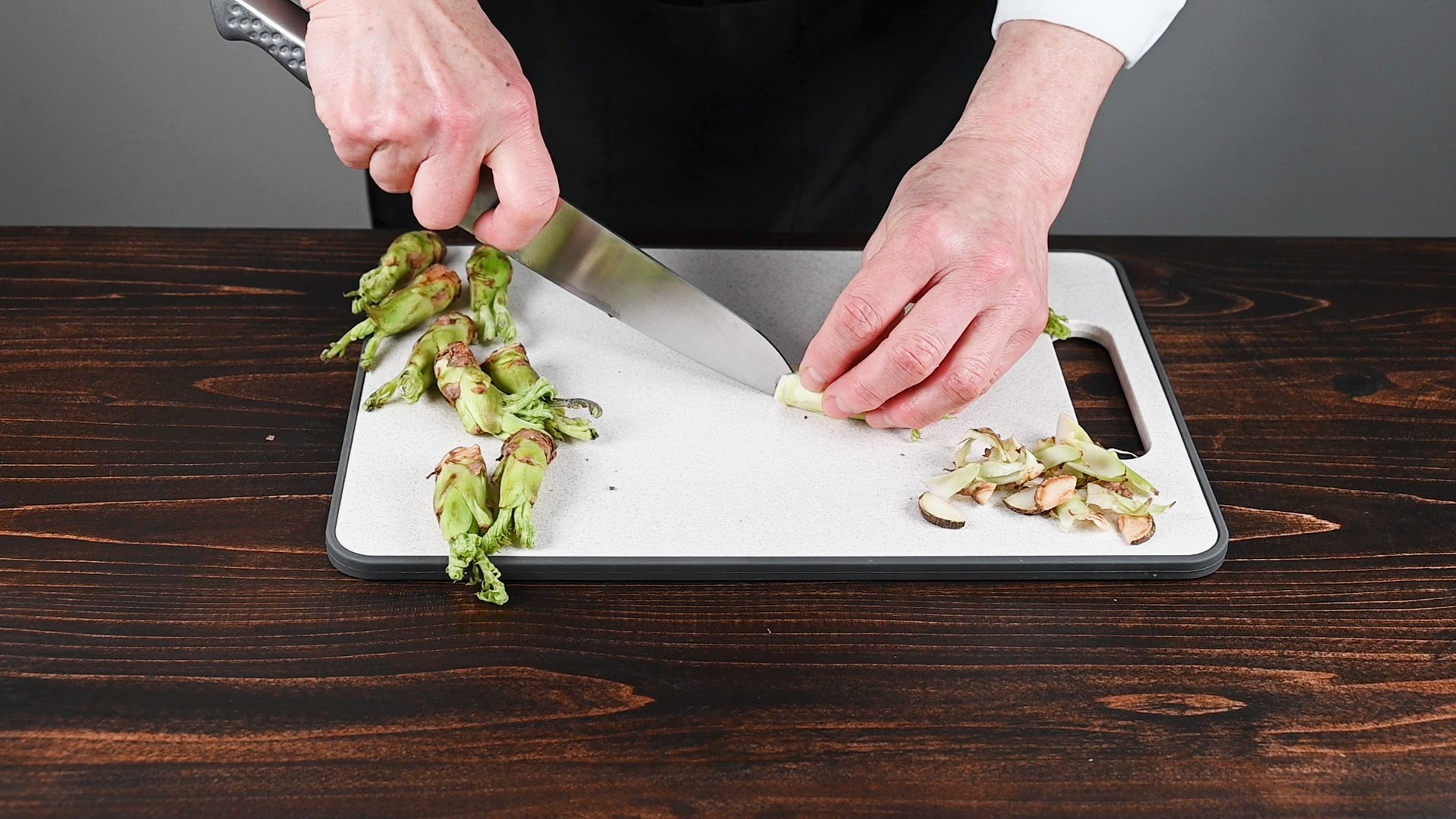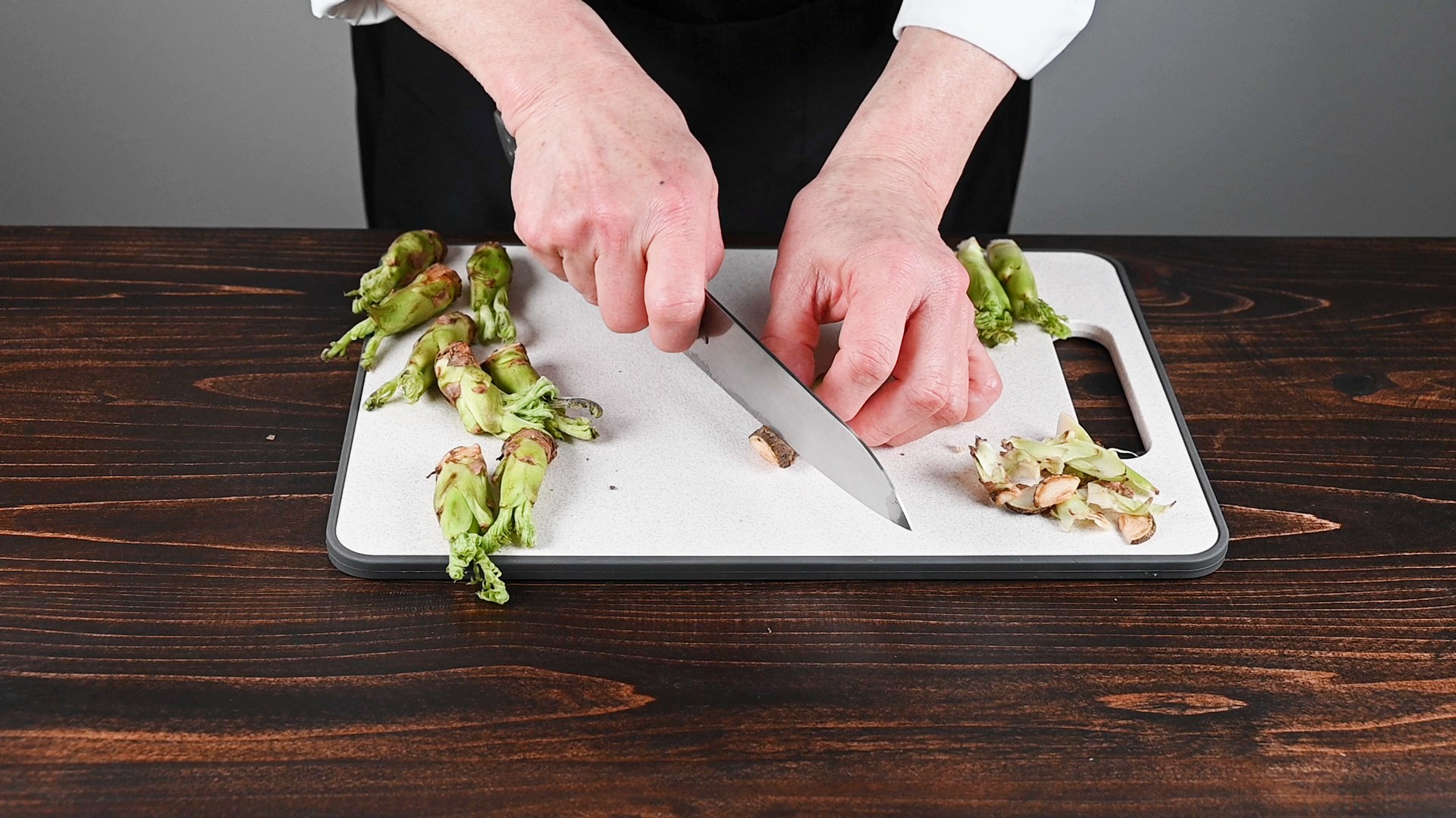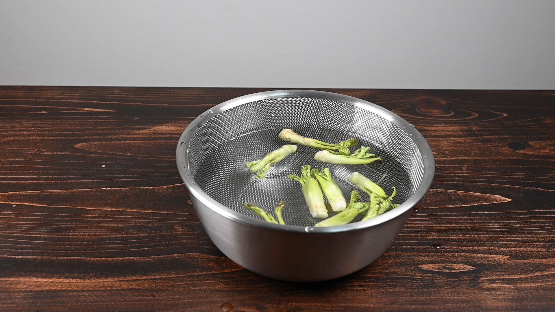 鍋に湯を沸かして塩を入れ、タラの芽をゆでます。
