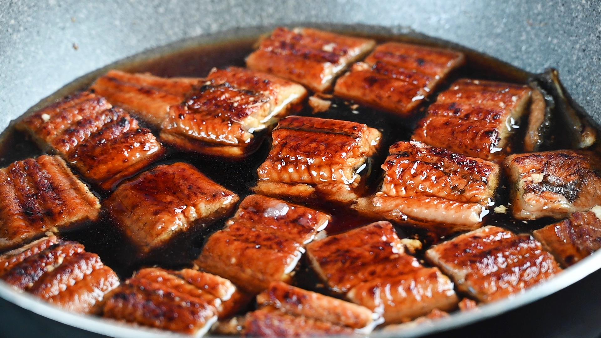 ペットボトルのお茶・・・300㎖位(フライパンの中のウナギが浸る位)